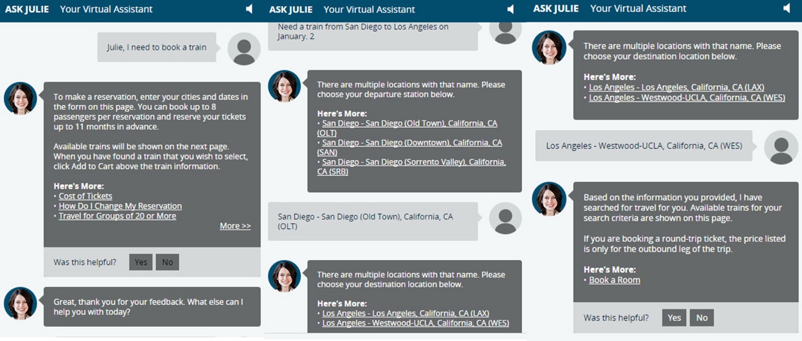 Julie is a virtual assistant. She presents a full navigation throughout the website and looks for the shortest route to the destination required. Any query can’t be left without a solution. In case you choose a route, bot transfers you to the page where you can book tickets. Julie generates significant profits for its corporation.